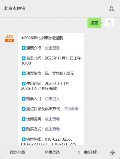 温馨提示:微信搜索公众号【北京本地宝】,关注后在对线年北京博物馆通票购买入口(线上+线下+电话)、通票价格,购买指南、包含景点目录(减免价值),使用方法等。